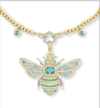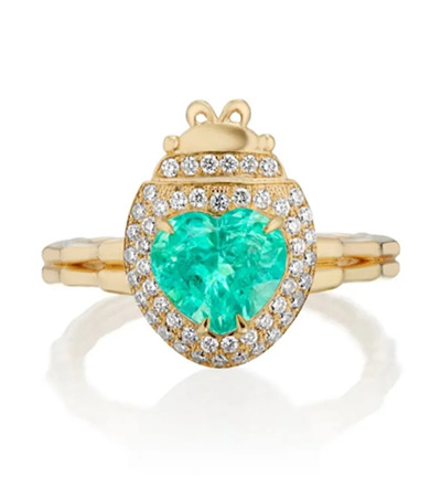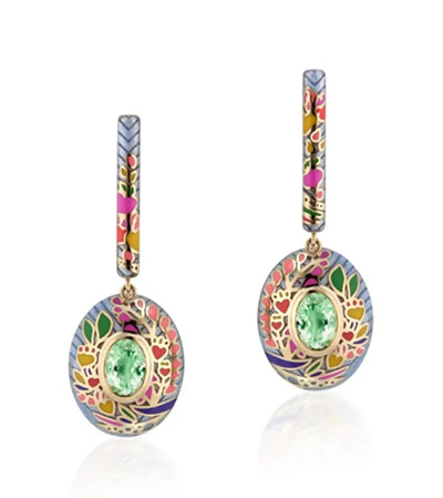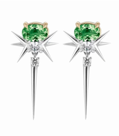 镶嵌非洲莫桑比克矿开采的绿色帕拉伊巴碧玺,通过天马行空的设计创意展现绿色帕拉伊巴碧玺的独特美感。