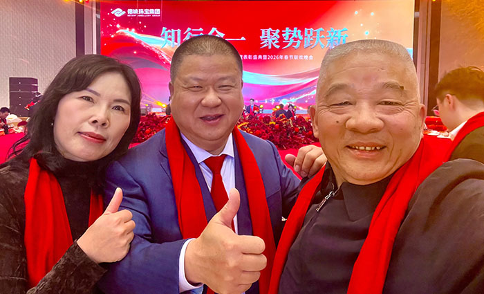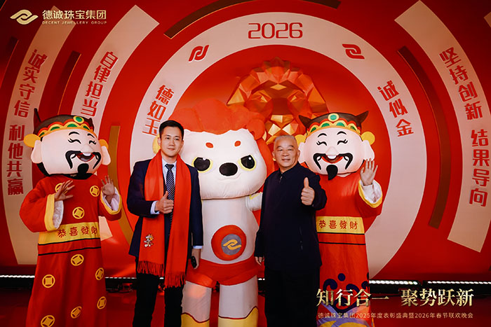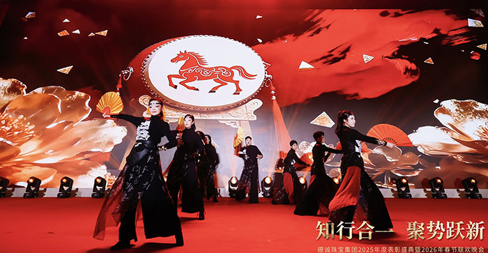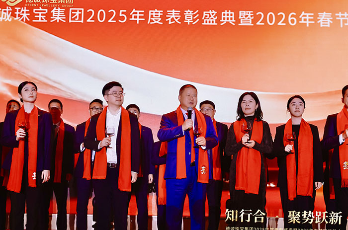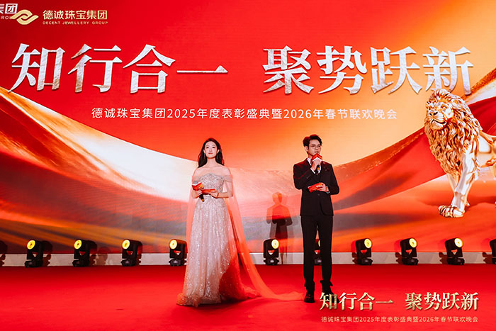 德诚珠宝集团昨晚隆重举行表彰大会暨春节联欢晚会,回顾硕果累累的2025,共启崭新征程。面对复杂多变的市场环境,集团坚持前瞻布局、深耕产品创新,精准把握消费结构转型升级趋势,以高品质黄金首饰与匠心设计赢得市场青睐,全年经营业绩再创新高。晚会现场暖意融融、掌声不断,既是对过往佳绩的致敬,更是对未来发展的期许。新的一年,德诚珠宝将继续以创新为翼、以品质为本,聚力前行,再创辉煌!